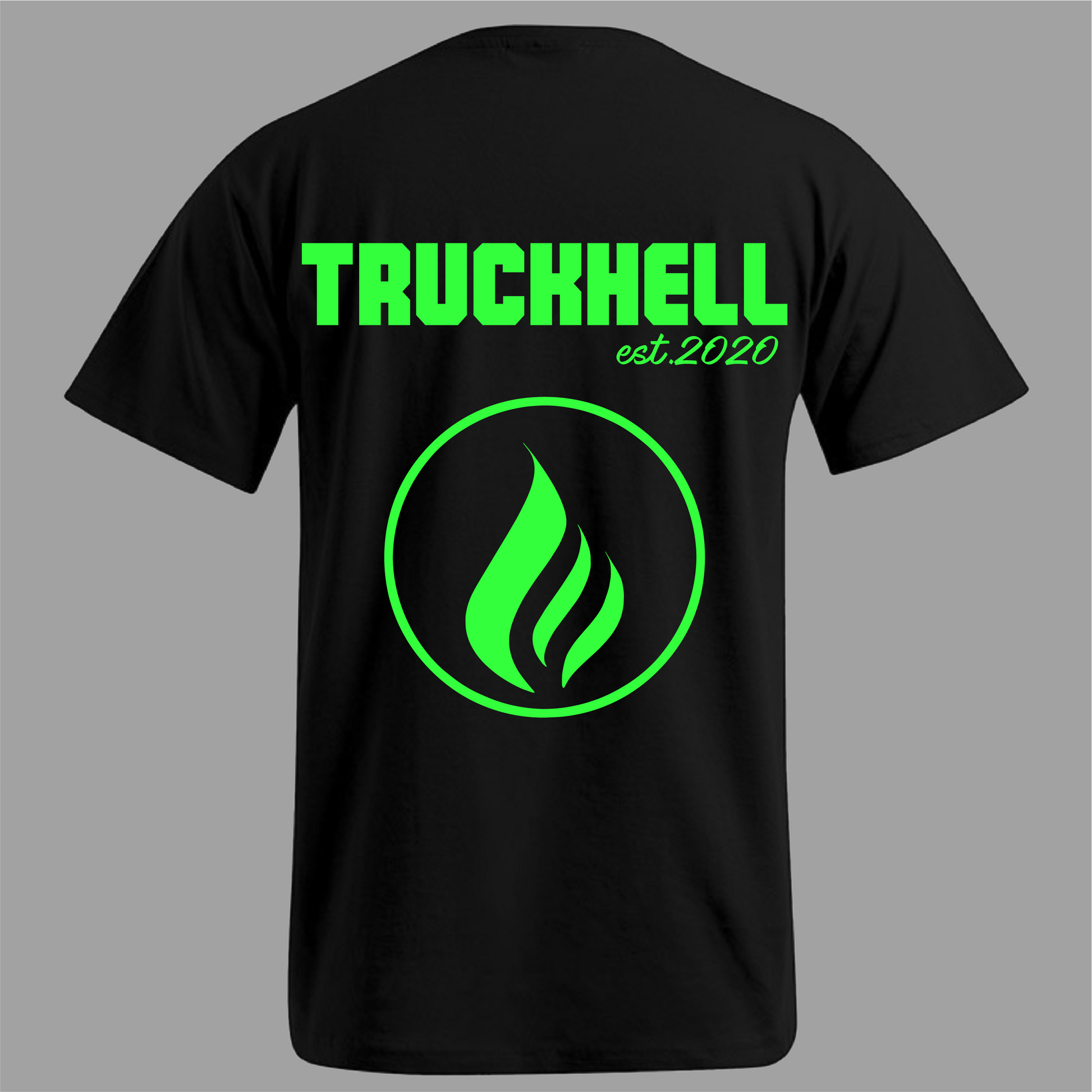 Das T-Shirt mit Flamme und Schriftzug Die Flamme vorne ist wie die Flamme auf der Rückseite.
