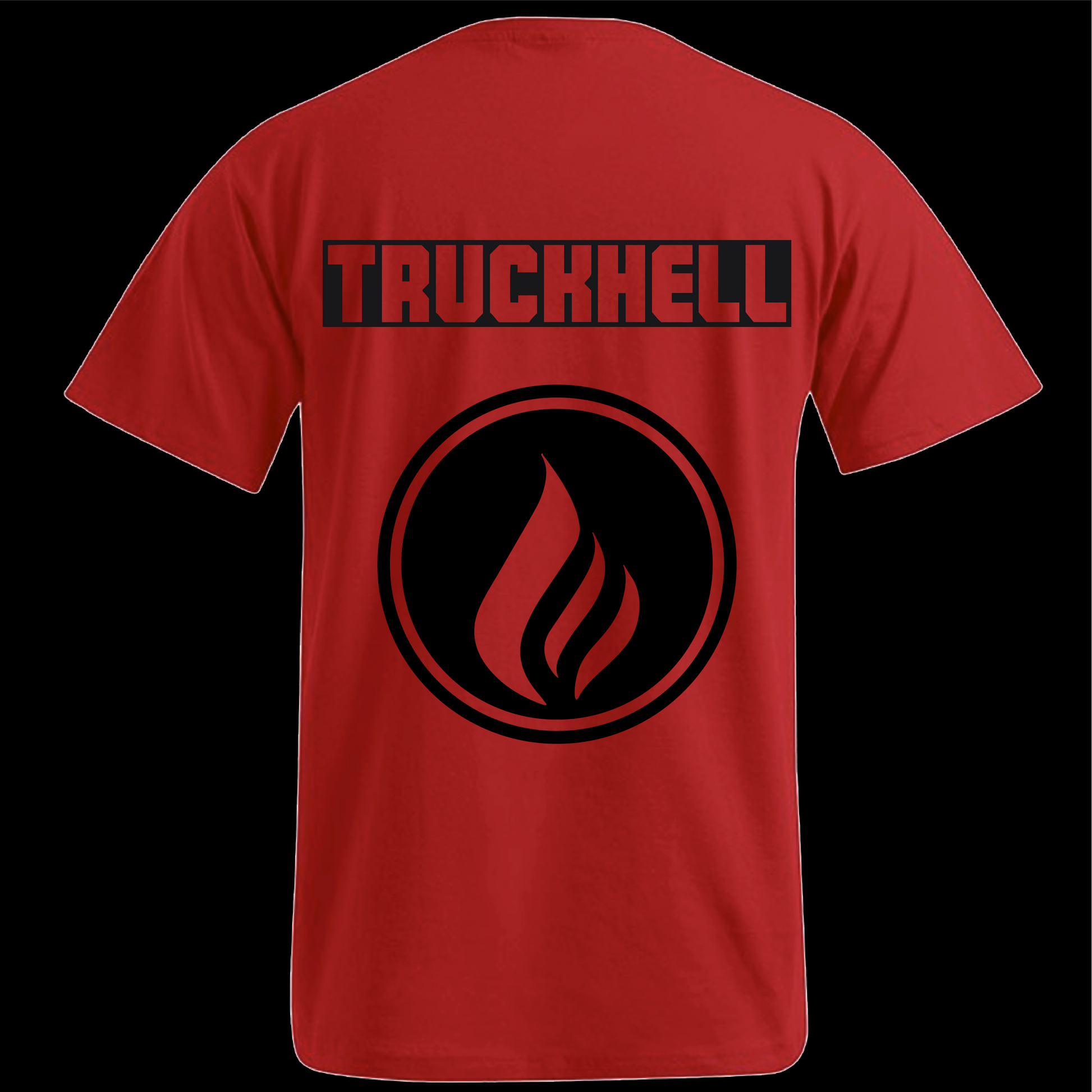 Das T-Shirt mit Flamme und Schriftzug Die Flamme vorne ist wie die Flamme auf der Rückseite.